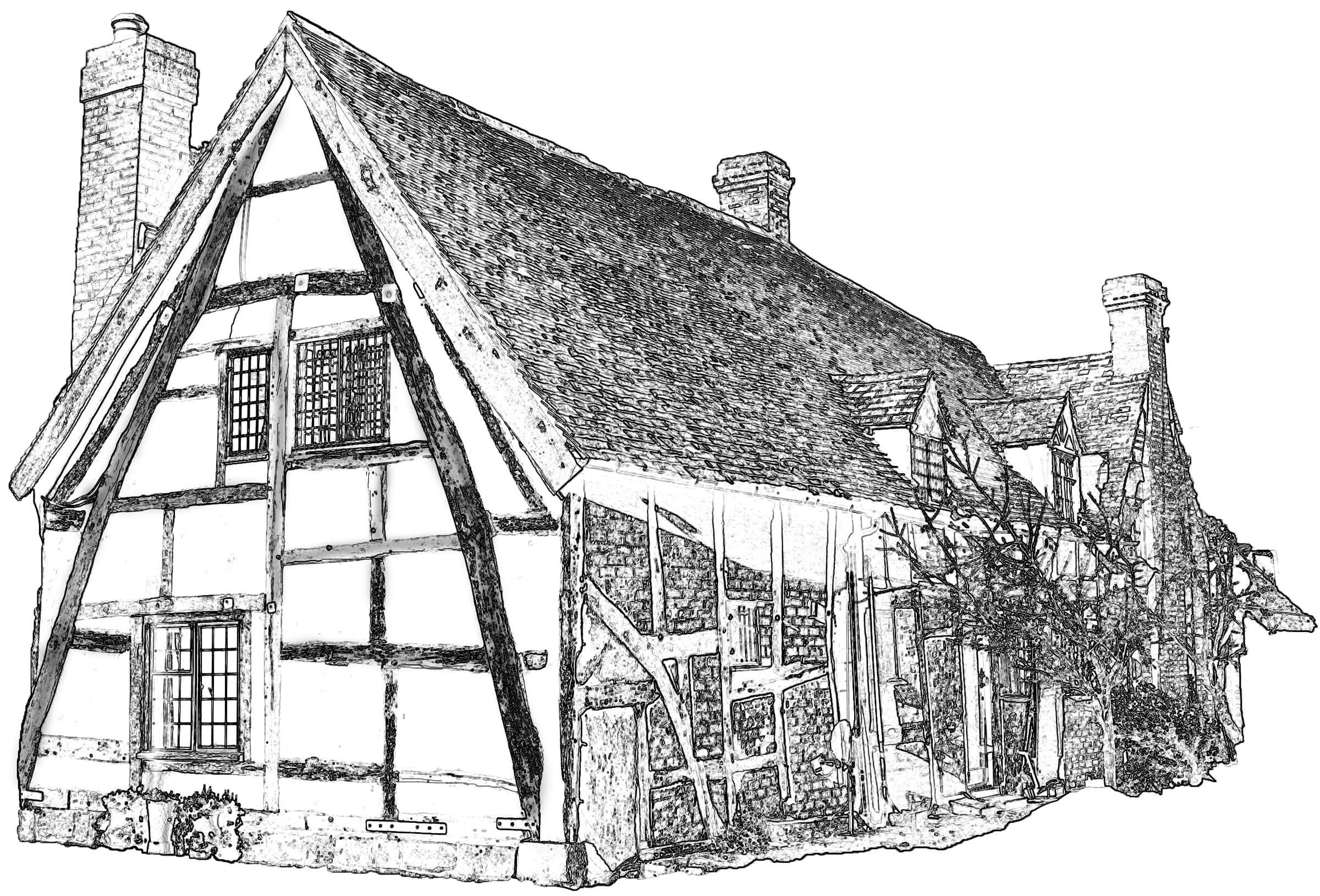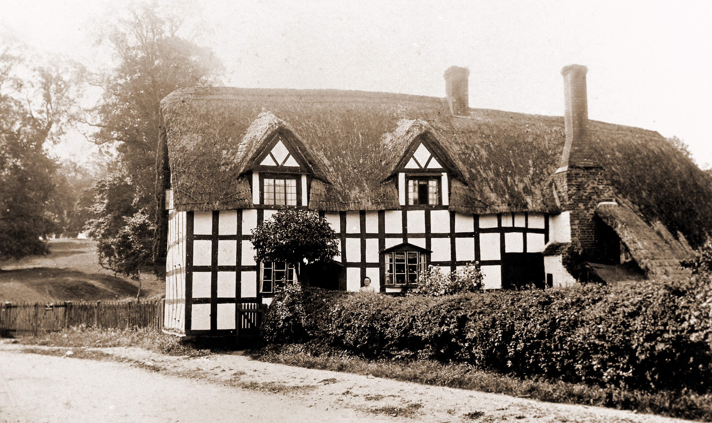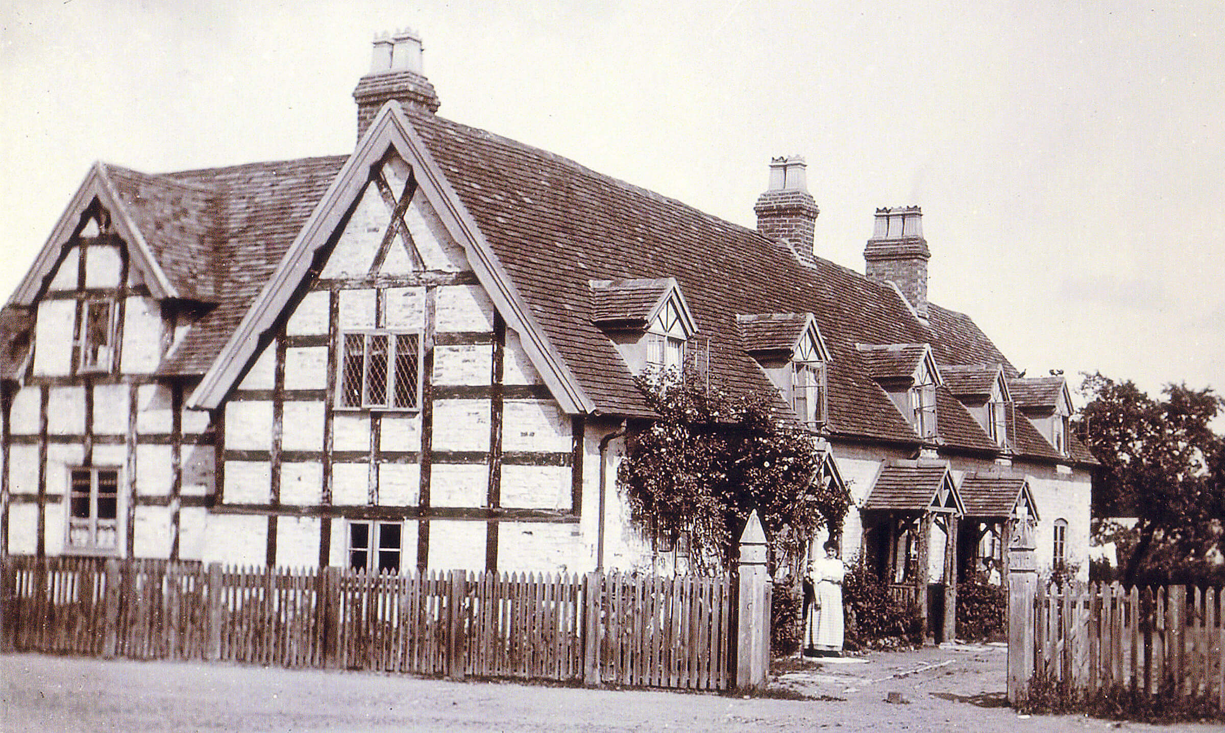 Wick has a number of timbered houses from the late medieval times. Five of the oldest among them are cruck-built, where two curved timbers are split from one tree. They rise from the floor then join at the top to create one end of a frame, with another cruck-frame at the other end, joined by a long beam to create a secure structure. You can see an example on the end of the house opposite the play-ground.